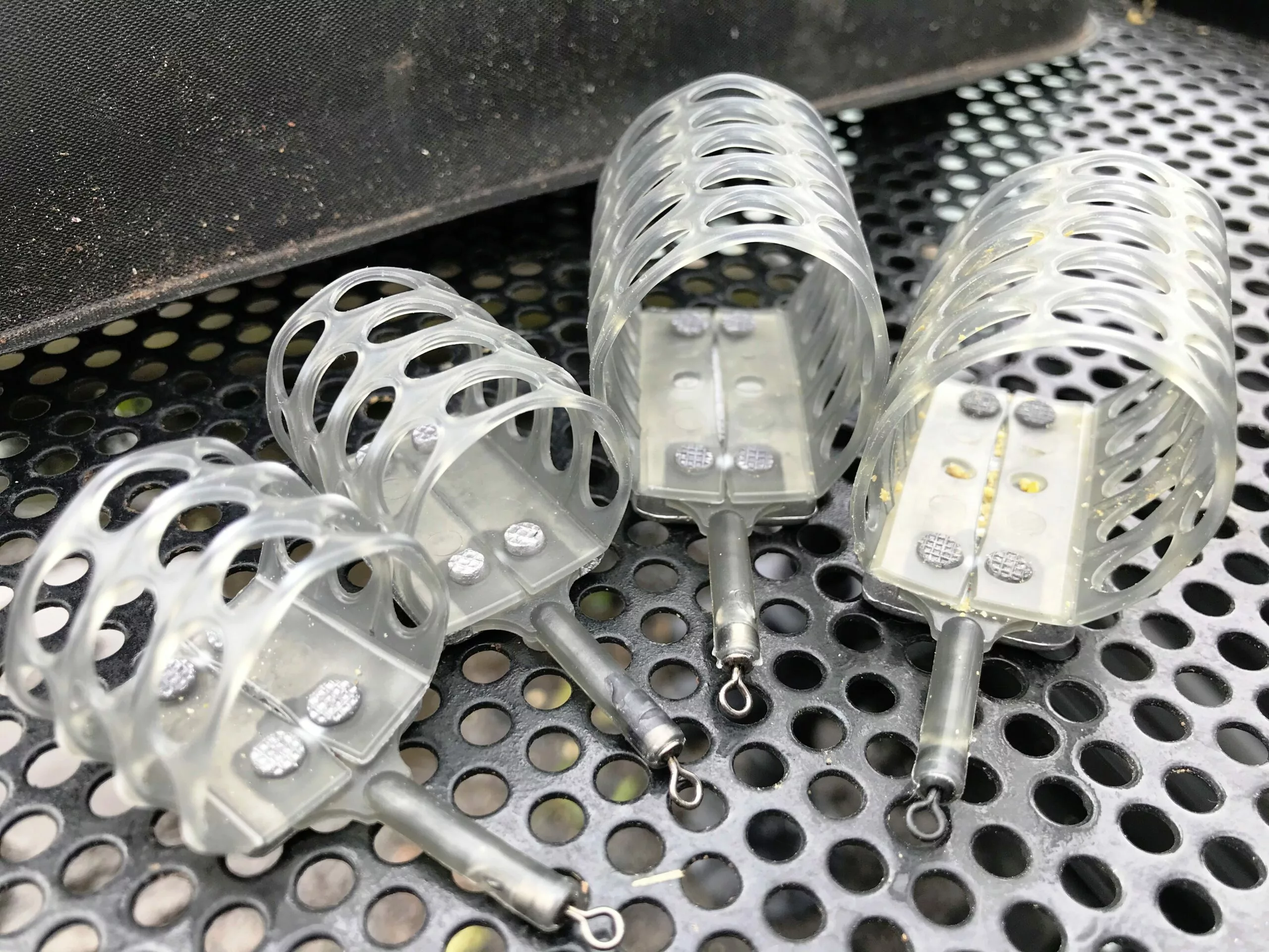 Bijzonder grote swimfeeder met grote gaten. Interne richeltjes zorgen ervoor dat het grondvoer goed vast zit.